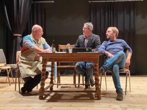 Von links der Schreinermeister Ludwig (Peter Depta) im Gespräch mit Franz (Martin Huber) und seinem Sohn Andi (Michael Münch).