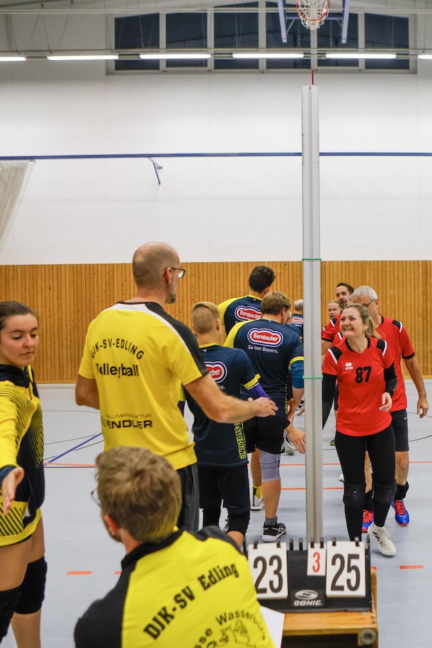 Als Tabellenführer empfingen die Edlinger Volleyballer die Mixed-Vertretung aus Mühldorf. Entsprechend waren die Ränge in der Edlinger Schulturnhalle wieder sehr gut besucht, über 70 Zuschauer wollten die Gelb-Schwarzen wieder punkten sehen. Das erfahrene Team des TSV Mühldorf zeigte sich ob des großen und lautstarken Publikums unbeeindruckt. Rasch gingen die Gäste in Front und brachten Satz 1, stets mit einem äußerst komfortablen Vorsprung, ins Ziel (17:25).