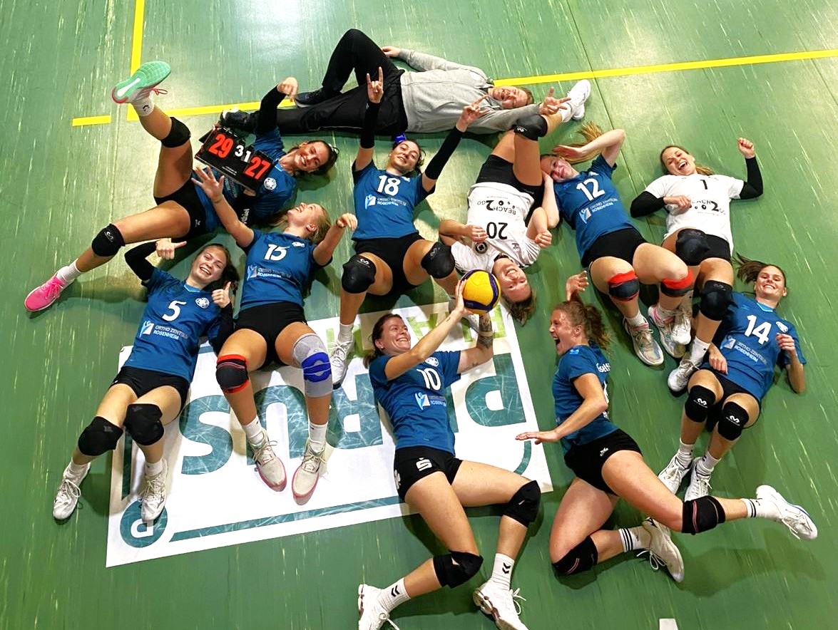 Die Damen I (Foto) – das starke Regionalliga-Aushängeschild – waren in Marktredwitz zu Gast, das am weitesten entfernte Auswärtsspiel wartete nahe der tschechischen Grenze. Aber die lange Fahrt hat sich gelohnt: In vier hart umkämpften Sätzen gewannen die Kleeblätter 3:1 (25:19, 25:23, 16:25, 29:27) und schoben sich durch die weiteren drei Punkte nun an die Tabellenspitze der Regionalliga. Nächstes Wochenende ist spielfrei, bevor dann ein Doppelspiel-Wochenende in Nordbayern ansteht.