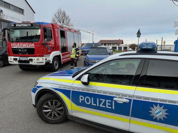 Feuerwehr Pfaffing und Polizei zur Mittagsstunde in Forsting im Einsatz