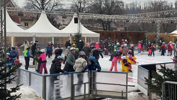Der Vormittag: Das ist in der Sparkassen-Eislauf-Arena die Zeit für die Schülerinnen und Schüler. Schon einige Wochen vor dem Auftakt waren alle Eislaufzeiten von Schulen aus der Stadt und dem gesamten Altlandkreis komplett ausgebucht. Meistens tummeln sich gleich mehrere Klassen auf der Eisfläche am Gries, bevor es um 14 Uhr mit dem öffentlichen Eislauf losgeht. Auch ein bisserl Regen macht den jungen Eisläufer da nichts aus. Übrigens: Zum Wochenende hin soll’s wieder perfektes Winterwetter geben.