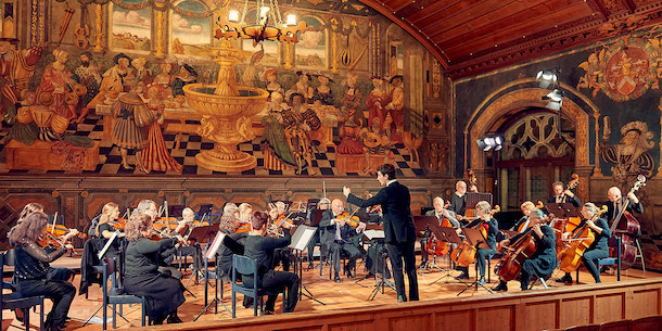Auf dem Programm – einer Mischung aus glänzenden Barockklängen und schwelgenden romantischen Linien – stehen ferner das barocke „Concerto in g für Cembalo“ von Wilhelmine von Bayreuth mit Sofya Gandilyan am Soloinstrument sowie „Aus Holbergs Zeit“, eine fünfsätzige Suite für Streichorchester von Edvard Grieg, das „Concerto grosso op. 6/Nr. 2″ von Georg Friedrich Händel und die „Serenade in d-Moll“ für Streicher von Julius von Beliczay.
