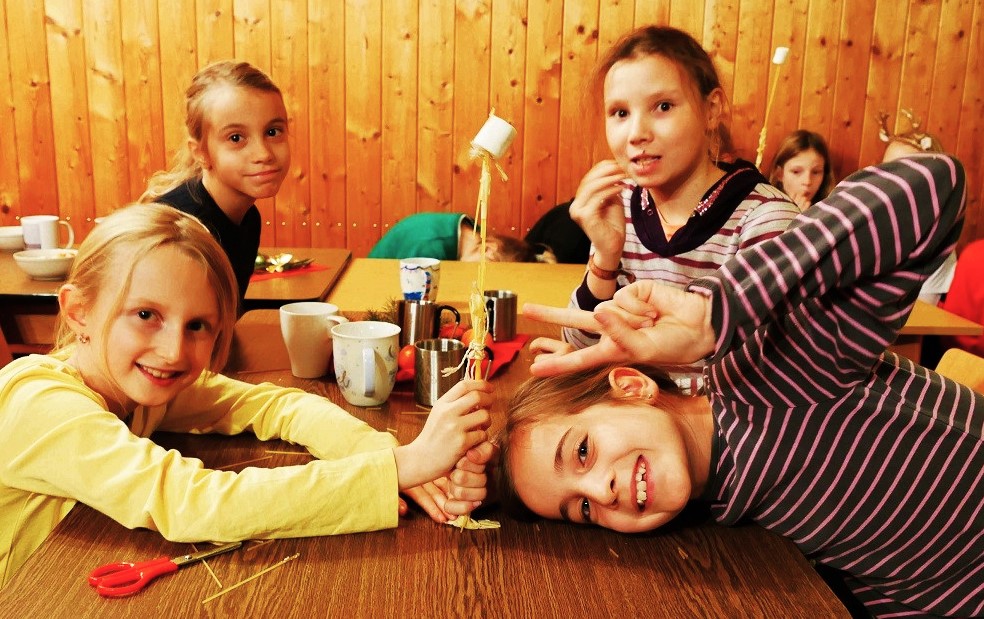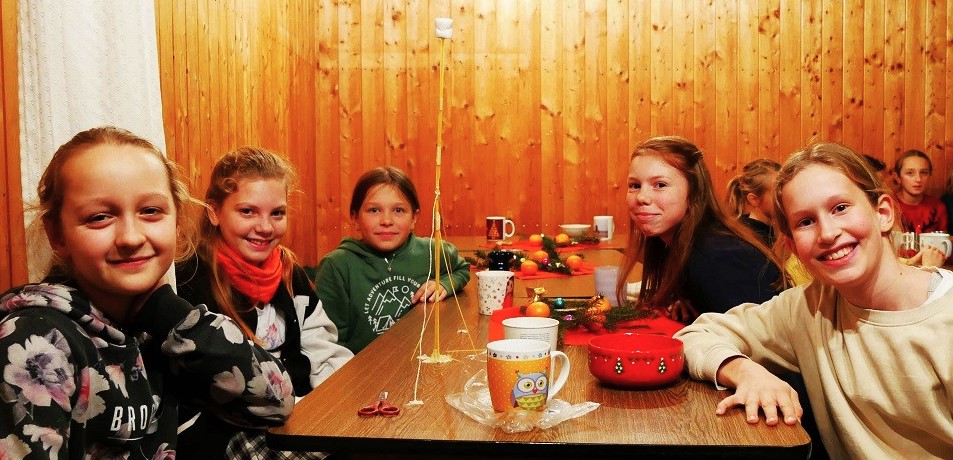 Nach den weiteren Programmpunkten wie tolle Papiersterne basteln (U12 – Foto) und Weihnachtsdüfte erraten (U14) freute man sich auf Minipizzen sowie überbackene Baguettes – dazu gab’s Kinderpunsch. Ingrid und Rita sorgten in der Küche bestens dafür, dass jedes der Kinder auch wirklich satt wurde.
