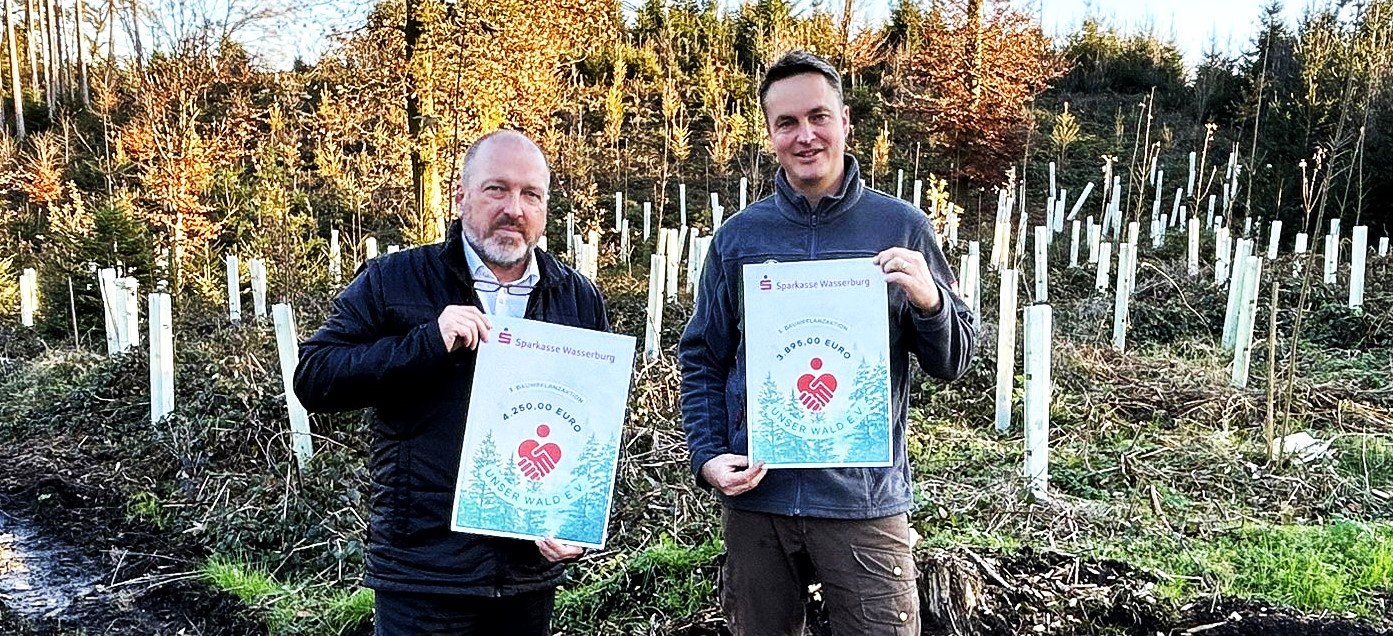 Die Sparkasse Wasserburg zeigt erneut ihr Engagement für Nachhaltigkeit und die Region: Mit zwei großzügigen Spenden unterstützt die Sparkasse den Verein „Unser Wald“. Dank der Spende ist es dem Verein möglich, auf Ausgleichsflächen gezielt ein breites Spektrum an klima-resistenten Baumarten zu setzen. So entstehen hochwertige Mischwälder, die durch die hohe genetische Vielfalt widerstandsfähiger gegenüber den Klimaeinflüssen sind.
