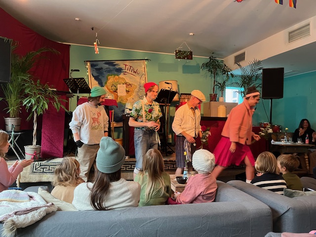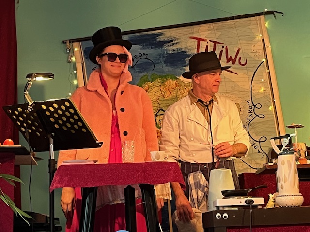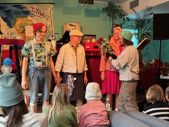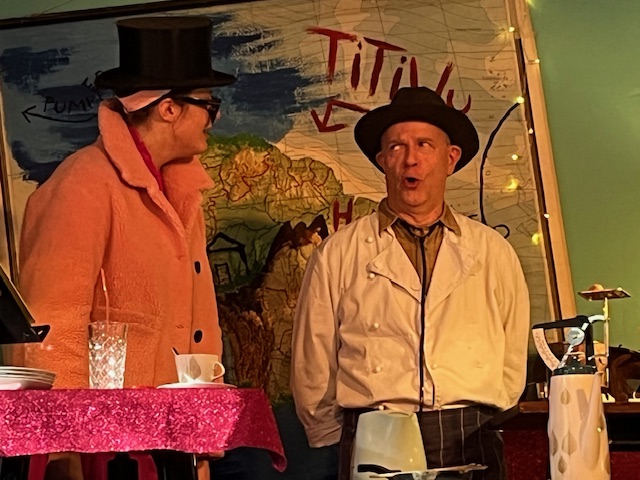Das Theater Wasserburg hatte zur Premiere geladen und es kamen viele, sehr viele Kinder aus allen Altersklassen mit ihren Eltern oder Großeltern oder sonstigen Anverwandten. Und die Kinder, die an diesem Vormittag ins Theater kamen, waren nicht alle minderjährig. Gespielt wurde diesmal nicht im großen Saal des Wasserburger Theaters, sondern in der Theatergastronomie „Der Berg ruft“. Dort wurden Tische, Stühle, Polstermöbel aufgestellt, damit eine Theateratmosphäre entstehen konnte, die dem Varietétheater entlehnt sein dürfte. Und dieses Ambiente ist gelungen: Man setzte sich gerne, bestellte sich vielleicht etwas zu trinken und wartete auf das, was die Veranstalter vorbereitet hatten: