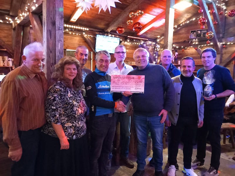 Im Herbst fand beim „Wirt z’Rieden“ bei Soyen eine erfolgreiche Benefiz-Tanzveranstaltung zugunsten der kleinen Emilia statt (wir berichteten). Die musikalische Unterhaltung boten Schlagersänger Udo Alexander und das „Trio Peguno“, die zusammen für gute Stimmung und eine volle Tanzfläche sorgten. Bei der Benefiz-Tanzveranstaltung in Rieden und weiteren Aktionen bei anderen Tanzveranstaltungen konnten 1.800 Euro an Spenden gesammelt werden. Die Veranstaltungsprofis von SAS rundeten den Betrag dann auf 2.000 Euro auf.