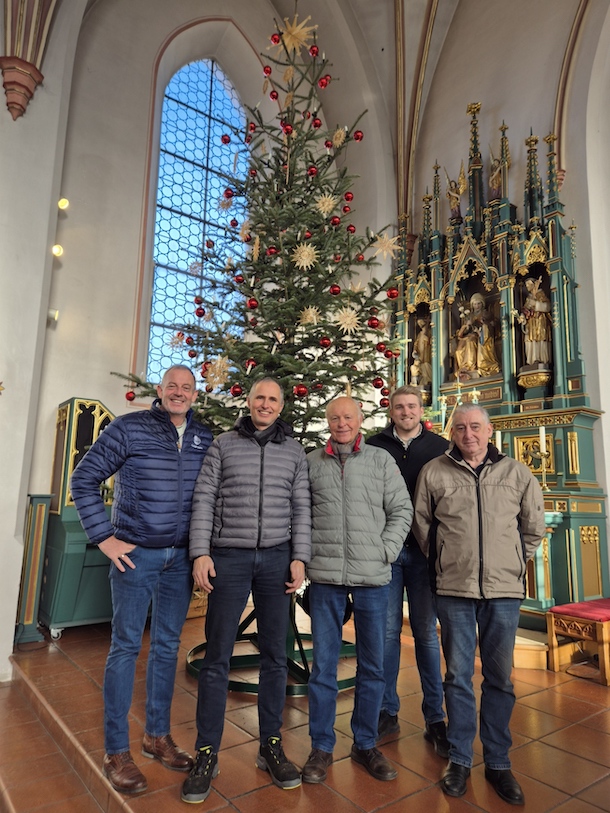 Gemeinsam mit Horst Achterling, Klaus Winhart, Hermann Jäger, Ludwig Schletter sowie Mesnerin Betty Tremonte wurde der Baum vom stellvertretenden Vorstand Dr. Stephan Dörfler, Schriftführer Franz Pöschl und Beisitzer Alexander Schmid festlich geschmückt. Rote Christbaumkugeln und traditionelle Strohsterne verleihen dem Baum seinen festlichen Glanz. Die weihnachtliche Gestaltung der Kirche wurde am Sonntagnachmittag dann noch von den fleißigen Kirchenschmückern mit prächtigem Blumenschmuck komplettiert.