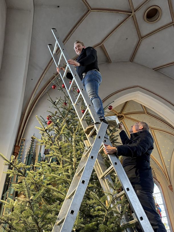 Wenn viele Hände zusammenhelfen, geht auch eine große Aufgabe leicht von der Hand: Am Samstag ging es in der Pfarrkirche Mariä Himmelfahrt in Haag eifrig zu. Die Vorstandschaft des Haager Festvereins erklärte sich spontan bereit, mitzuhelfen. So war der Christbaum schnell in voller Pracht zu sehen und kann während der Feiertage bestaunt werden.