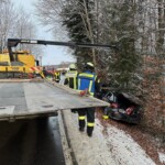 Für die Dauer des Einsatzes sowie Bergung des Fahrzeugs musste die Kreisstraße für knapp zwei Stunden gesperrt werden.