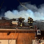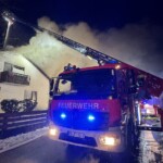 Gegen 5.50 Uhr ging bei der Integrierten Leitstelle Rosenheim die Mitteilung über den Brand in einer dezentralen Asylbewerberunterkunft in der Alpenstraße in Griesstätt ein. Bei Eintreffen der sofort alarmierten regionalen Feuerwehren stand der Dachstuhl des betroffenen Objekts bereits im Vollbrand. Durch das rasche und professionelle Eingreifen der Einsatzkräfte konnte ein Übergreifen der Flammen auf benachbarte Gebäude verhindert werden. Im Zuge der aufwendigen Löscharbeiten wurde das Feuer vollständig abgelöscht.