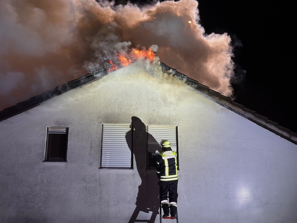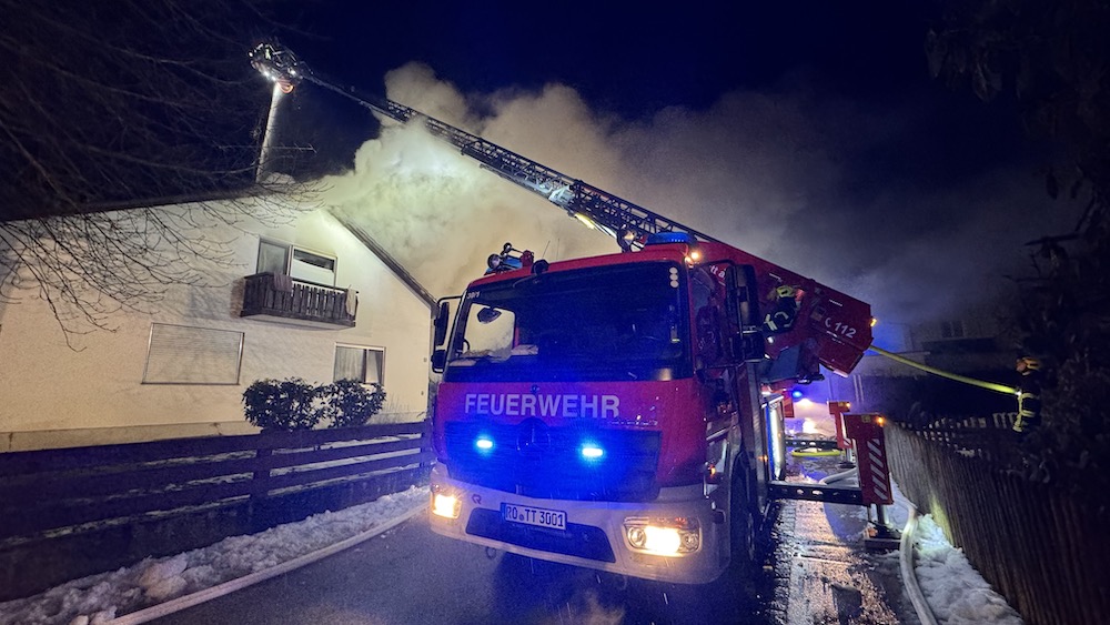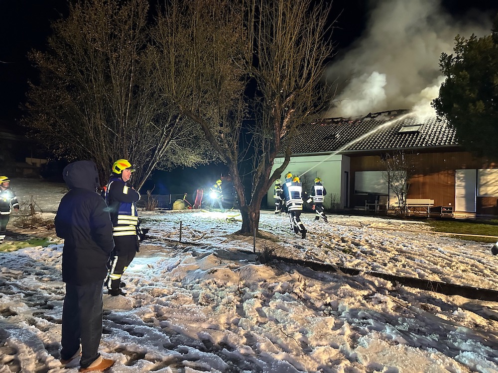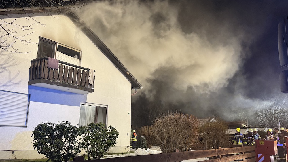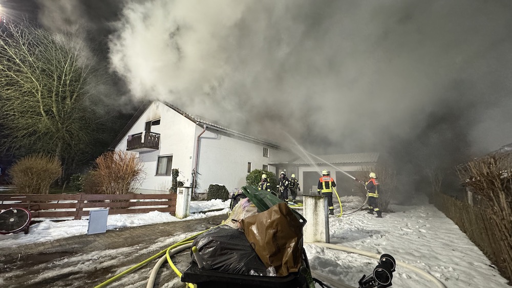 Gegen 6 Uhr morgens kam die Meldung: Zimmerbrand in einem Gebäude in der Alpenstraße in Griesstätt. Als die Einsatzkräfte nur wenige Minuten später dort eintrafen, stand bereits der Dachstuhl lichterloh in Flammen.