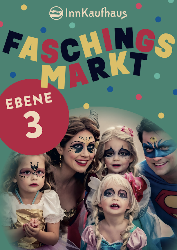 PR – Kaum sind Weihnachten und Silvester vorbei, kann auch schon wieder weiter gefeiert werden. Im Innkaufhaus gibt es ab kommenden Samstag, 11. Januar, alles, was man für die fünfte Jahreszeit benötigt. Der komplette dritte Stock ist dann für den Fasching reserviert. Dort gibt’s Kostüme, Masken, Hüte und Accessoires und vieles mehr für Jung und Alt. Obacht! Termin schon mal vormerken: Am Samstag, 1. Februar, gibt’s ab 9 Uhr im Innkaufhaus exklusiv die Karten für die große Ü30-Faschingsparty im Badria – letztes Jahr der Renner und schnell ausverkauft.