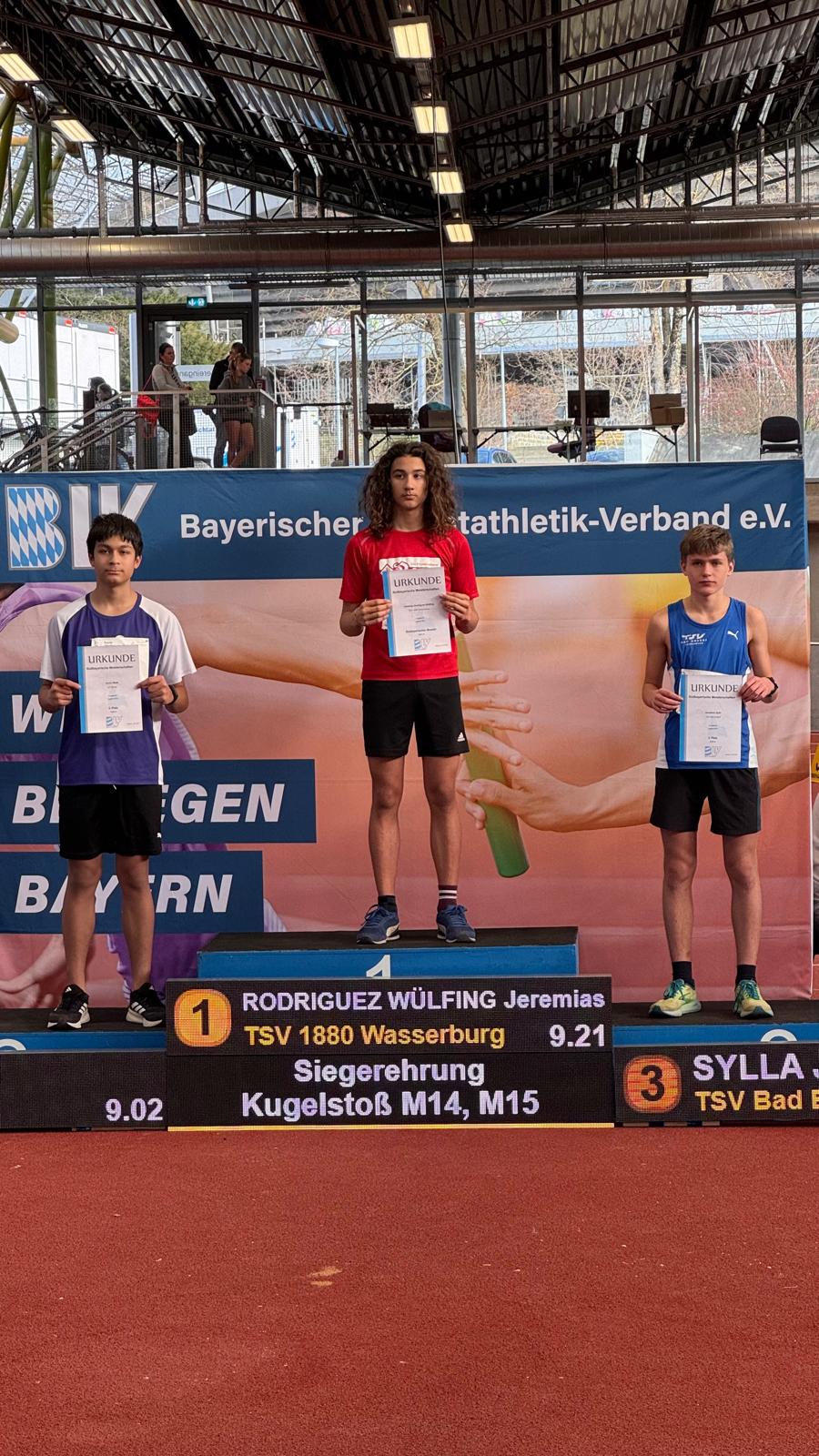 Eine weitere Meisterschaft geht auf das Konto von Jeremias Rodriguez Wülfing. Im Kugelstoß der M14 sicherte er sich mit 9,21 Metern den Titel vor Armin Weiß von der LG Sempt. Außerdem stand Jeremias noch im Endlauf über 60m, wo er mit einem vierten Platz und 8,19 Sekunden nur um 3/100 Sekunden an den Medaillen vorbeilief.