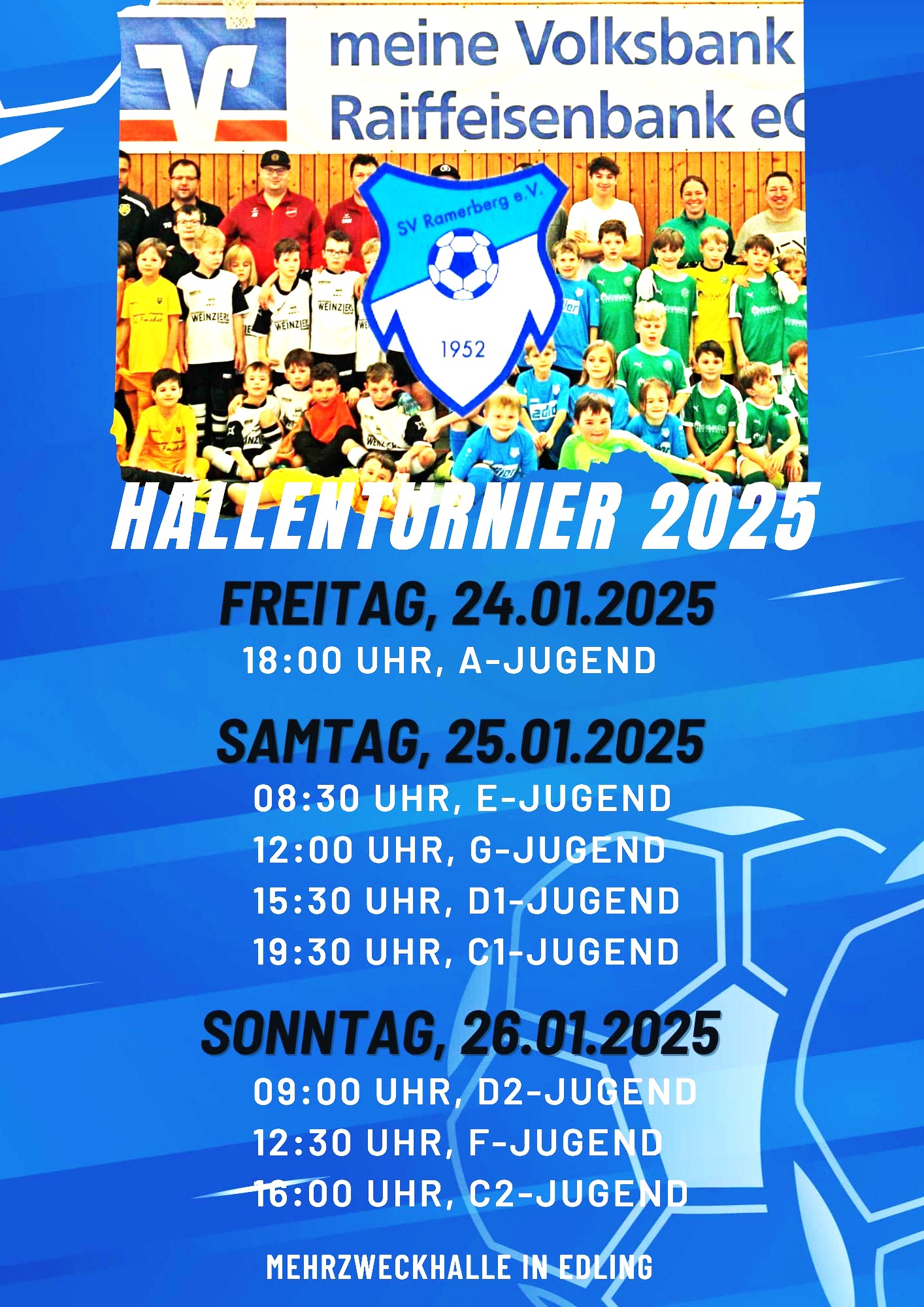 Am kommenden Wochenende findet das jährliche Junioren-Hallenturnier des SV Ramerberg – der Raiffeisen-Cup – in der Schulturnhalle in Edling statt. Gestartet wird am Freitag mit den A-Junioren ab 18 Uhr.