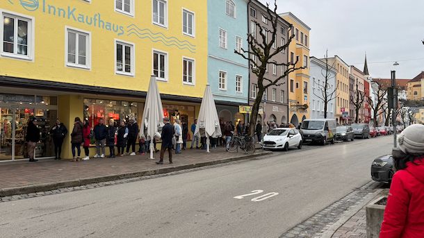 Dichtes Gedränge herrscht im Wasserburger Traditionskaufhaus in der Ledererzeile öfter – solch lange Schlangen, bevor sich die Pforten öffnen, gibt es allerdings nicht alle Tage. Das kommt im Innkaufhaus schon mal bei der beliebten Ladies-Night vor. Oder eben an einem Tag wie heute, wenn die Karten für die Ü30-Party – am kommenden Samstag, 8. Februar, in der Badria-Halle – exklusiv im Kaufhaus verkauft werden. Die Party am nächsten Wochenende ist auch heuer der Renner, was das Organisations-Team um die Vereine