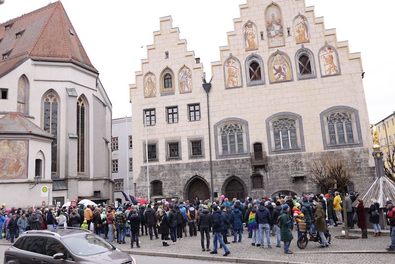 Zur heutigen Demo vor dem Wasserburger Rathaus kamen rund 300 Teilnehmer