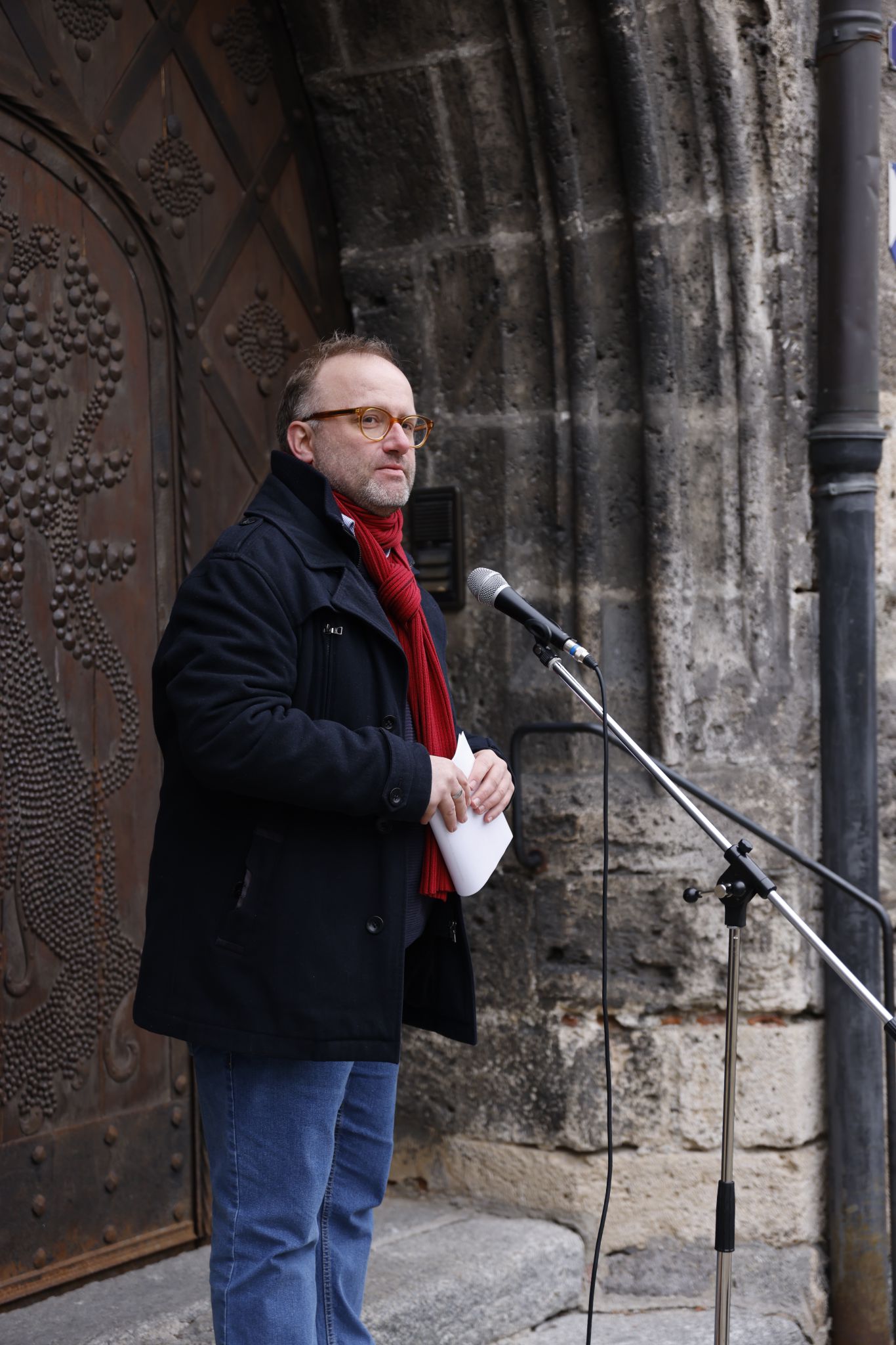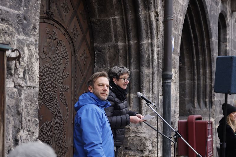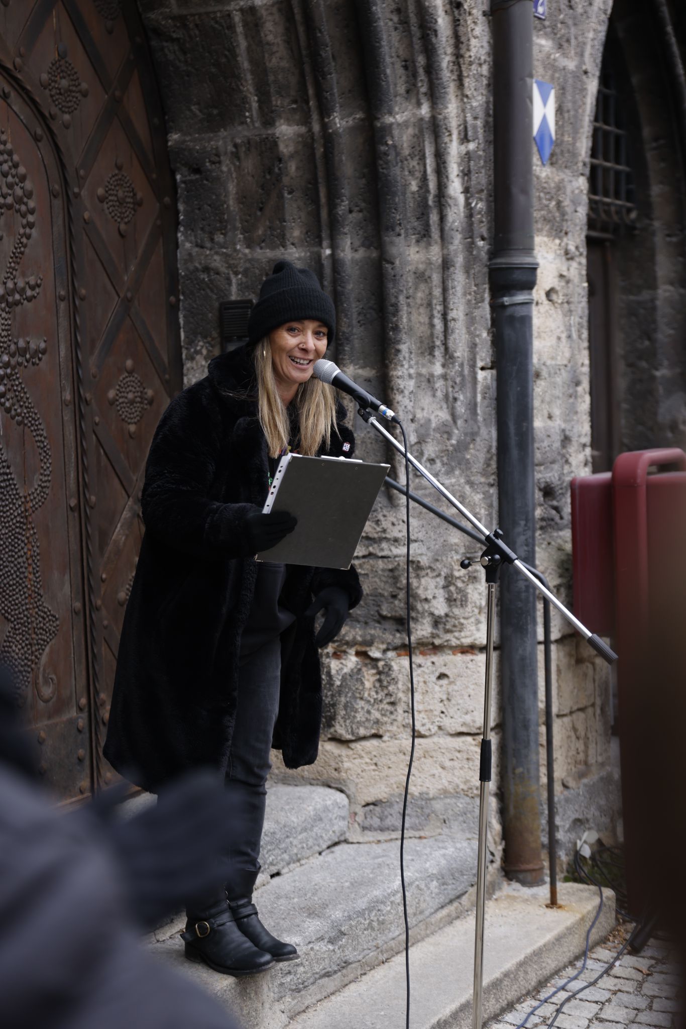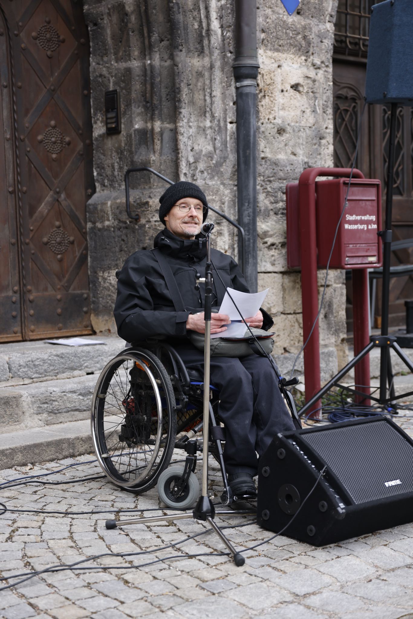 Für bewegende Redebeiträge sorgten Anita Arz, Initiatorin der Veranstaltung, Sprecherin Steffi König und Christian Peiker von „Wasserburg.bunt“, Regisseur und Initiator der Max-Mannheimer-Kulturtage Bad Aibling Michael Stacheder, Vorsitzender des TSV 1880 Wasserburg Bastian Wernthaler, Behindertenrechtsaktivist Jens Möllenhoff, Detlef Dobersalske vom Initiativkreis Migration, LGBTQ-Vorstand Uriel Breuer und Annett Segerer vom Theater Wasserburg. Musikalisch begleitet wurde die Aktion von „Omas gegen Rechts“ aus Rosenheim.