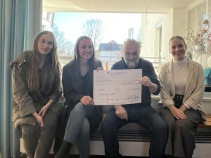 Insgesamt 250 Euro kamen beim Verkauf von Minibroten zusammen. Einen Spendenscheck übergaben (von links) Lucia Linner, Christina Wannesdorfer und Antonia Siegl an Robert Niederstraßer, der ihn stellvertretend für alle Bewohner aus der Zeno-Gruppe entgegennahm.