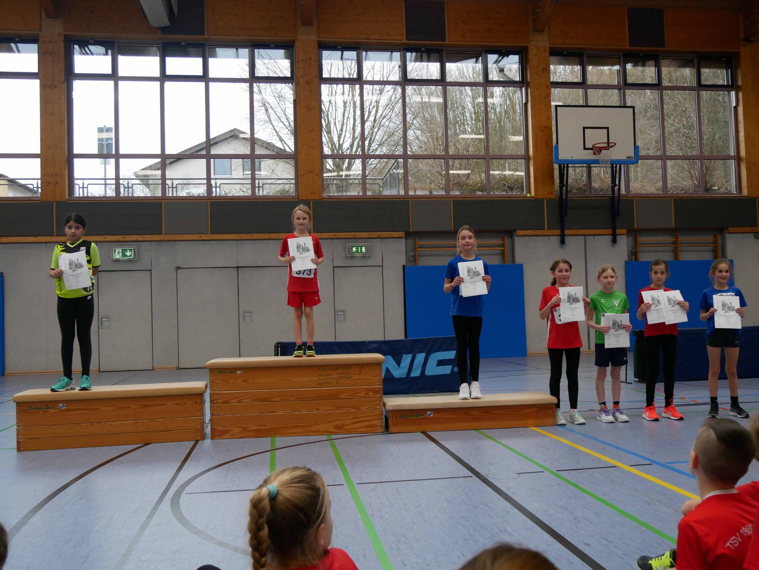 Ebenfalls über die Hindernisse sprintete Elisa Sporrer (W10) zu Rang vier mit einer Zeit von 8,49sec. Als diese für den 30m-Flachsprint beiseite gestellt worden sind, sprintete Elisa in 6,89 Sekunden auf Rang 3, nur sieben Hundertstel hinter der Zweitplatzierten aus Geretsried. Ophelia May, die Tochter Diana Mays, die die U12-Mädchen begleitete und ihnen nützliche Hinweise zur Ausführung gab, zeigte ihr Können im Hindernissprint W11, bei dem sie sich hinter Yeseniia den zweiten Rang mit der Schlossberg-Stephanskirchenerin Elisa Dierfeld in 7,25s Sekunden teilte. Im Hochsprung verpasste sie als Vierte und einer Höhe von 1,10 Metern nur knapp das Stockerl.