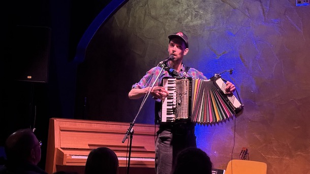 Grau war der Tag gestern in Wasserburg. Eisigkalt. Der Hochnebel killte jeden Sonnenstrahl, der versuchte, bis in den Talkessel der Halbinsel vorzudringen, unbarmherzig schon auf den ersten Metern seines Weges. Und so war das, was sich abends in der ausverkauften Kinowerkstatt von Rainer Gottwald abspielte, nahezu die einzig mögliche Rettung für erstarrte Winterherzen an diesem tristen Februartag in der Altstadt. Ein herzerwärmender, liebenswerter und gleichermaßen virtuoser Auftritt von Maxi Pongratz, dem Akkordeonspieler, Texter und Liedschreiber der bekannten und beliebten bayerischen Band „Kofelgschroa“.