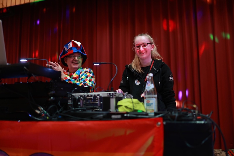 Zum Foto: Clown Stefan und Irmi Weinberger heizten dem begeisterten, jungen Publikum mit verschiedenen Spielen und Tänzen ordentlich ein …