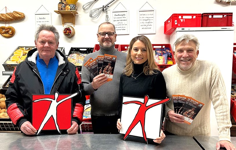 Das Foto zeigt von links Günther Pichler (Tafel), Reinhart Knirsch (Kulturforum), Alexa Dietz (Stiftungen) und Horst Steppi (Tafel).