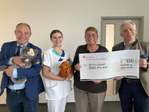 Die RoMed-Kliniken gehen einen innovativen Weg in der Betreuung von Menschen mit Demenz: Dank einer großzügigen Spende des Rotary Clubs (RC) Rosenheim in Höhe von 1.000 Euro kommen ab sofort besondere Therapietiere zum Einsatz – und zwar Plüschtiere.