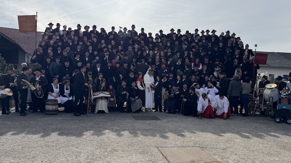 Das Brautpaar Apollonia Breznsoiza und Blasius Hoiznaglverbiaga genießt sichtlich ihren großen Tag. Bereits in den Morgenstunden begannen die Feierlichkeiten, die unter anderem durch die humorvollen Beiträge von Pfarrer Frieder und Kooperator Done Promillo bereichert wurden. Die beiden Geistlichen haben ihre Lesungen und Predigten mit viel Witz und Charme gestaltet, um die außergewöhnliche Trauung auf dem Misthaufen perfekt abzurunden.