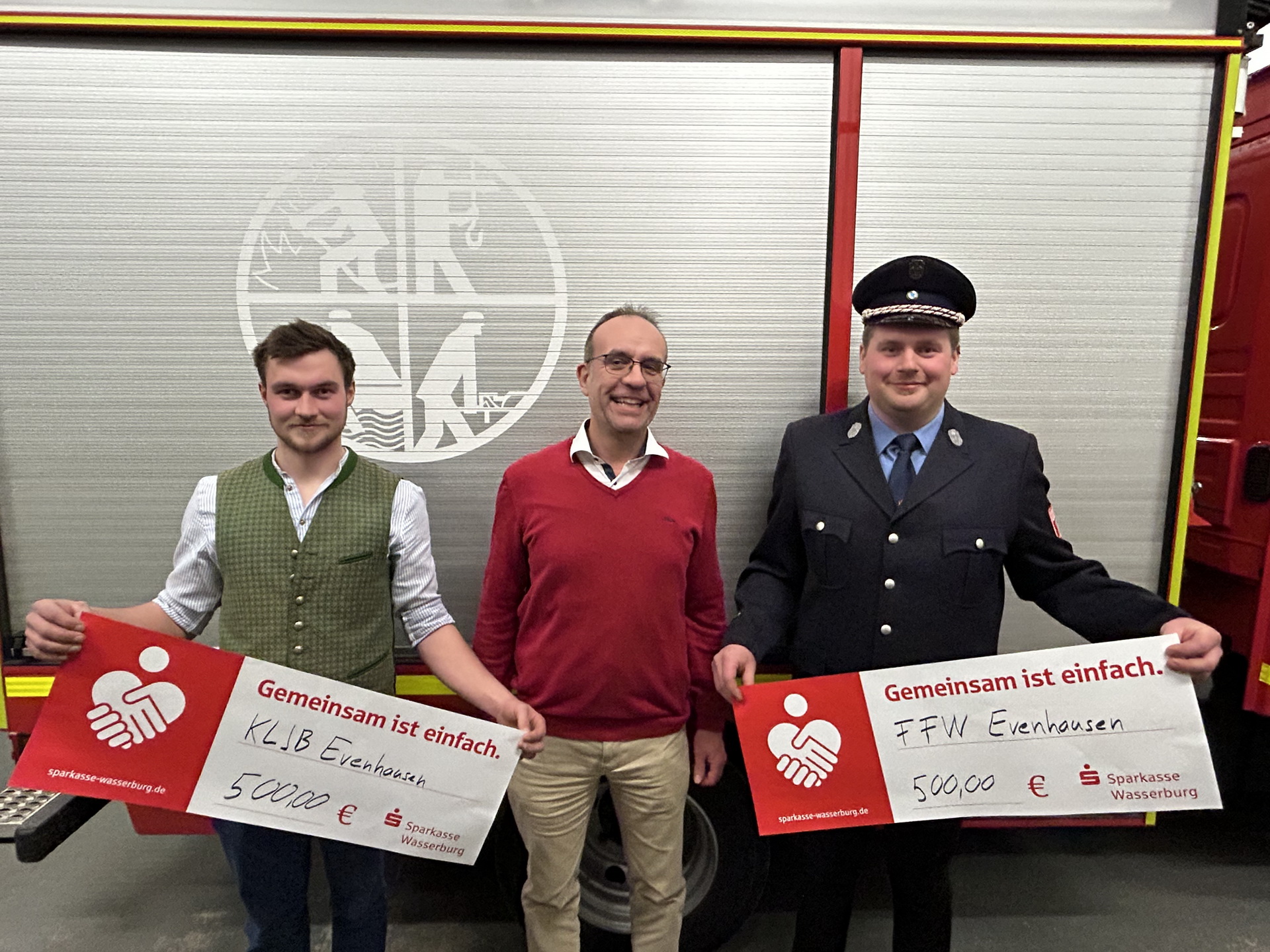Große Ereignisse werfen ihre Schatten voraus: Die Feuerwehr Evenhausen und die Katholische Landjugend (KLJB) Evenhausen feiern im Jahr 2026 gemeinsam ihre Jubiläen. Die Feuerwehr blickt auf stolze 150 Jahre Bestehen zurück, während die Landjugend ihr 75-jähriges Jubiläum begeht. Die Sparkasse Wasserburg unterstützt die Organisation der umfangreichen Festwochen mit einer Spende in Höhe von jeweils 500 Euro.