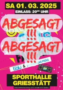 Der am morgigen Samstag geplante Kinderfasching und auch der Sportlerball am Abend in der Griesstätter Turnhalle werden kurzfristig aufgrund eines „nicht vollständig aufgeklärten, sicherheitsrelevanten Hinweises“ abgesagt.