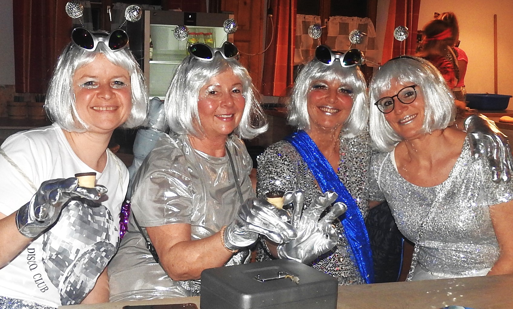 Viel Lob gab’s für sie: Heuer als Space-Girls verkleidet steckte ihre Freude so wunderbar an – das Organisations-Team der Pfaffinger Frauen Gemeinschaft begeisterte auch diesmal wieder mit Faschingskranzl und anschließendem Weiberfasching beim Neuwirt in Rettenbach. Hier die Bar-Crew der so fleißigen Veranstalterinnen …