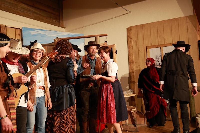Am Ende war nicht nur das Publikum rundum zufrieden, sondern besonders auch Bürgermeisterin Sissi Schätz, die für alle Darsteller ein Schnapserl ausgab und es gleich selbst kredänzte.
