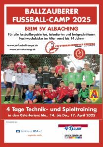 Alle fussballbegeisterten, talentierten und fortgeschrittenen Nachwuchskicker im Alter von sechs bis 14 Jahren können sich unter J.A. Fussballcamps – Fussball ist Spass pur oder Start – SV Albaching Fußball informieren und anmelden.