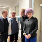 Im weiteren Verlauf des Gesprächs wurde deutlich, dass Erik Göngrich einen Unterschied zwischen „Wiederverwendung“ und „Recycling“ macht, nämlich den, dass Müll in seiner ursprünglichen Verwendung wieder gebraucht werden kann oder aber eine andere Nutzung möglich werden kann. Sehr häufig bewege sich Kunst, so ergänzte er, im Grenzbereich zwischen „Wiederverwendung“ und „Recycling“. Es sei aber die Müllvermeidung, auf die es ihm ankomme. Auch Michael Schultze nimmt an diesem Gespräch teil und ergänzt, dass es auch hybride Nutzungen geben könne, so könne eben eine Skulptur sowoel Kunst sein, die zum Betrachten einlade, andererseits aber als Möbelstück dienen. Und damit sei man bei der Frage der Bedeutung hinter den Skulpturen. Doch auch zweidimensionale Kunst ist ihm ein großes Anliegen, weshalb er gerne auch Siebdrucke, Zeichnungen und ähnliches herstelle, was eine große Farbigkeit ermögliche. Dies sei ihm auch sehr wichtig.