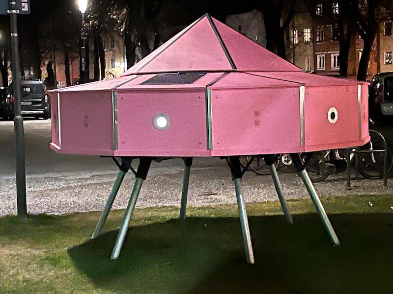 Vor dem Gebäude am Kaspar-Aiblinger-Platz steht weiterhin das „UFO“, in dem sich sechs Guckkästen befinden. Fünf von ihnen werden von Mitgliedern des AK68 künstlerisch ausgestaltet, im sechsten Guckkasten weisen die aktuell ausstellenden Künstler auf ihre Ausstellung hin.