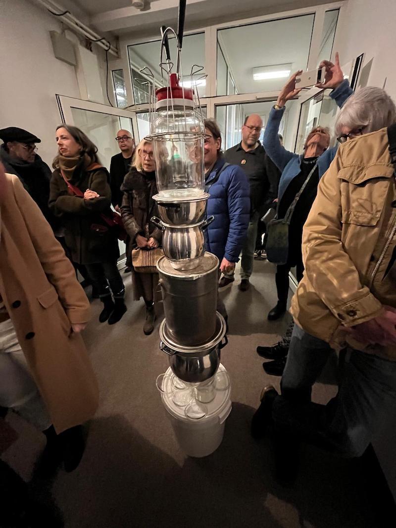 Auf das Gebäude der ehemaligen Polizeiinspektion angesprochen, waren beide Künstler begeistert von der Tatsache, dass in solchen Räumlichkeiten Ausstellungen stattfinden könnten. Vor allem gebe es sehr viel Platz in diesem Gebäude. Allerdings sei es ihnen doch zu schwer gefallen, auch die Gefängniszellen in ihre Kunstausstellung zu integrieren. Deshalb hätten sie sie lieber abgesperrt.