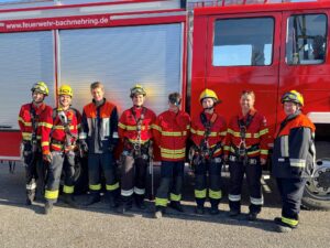 Mit einem praktischen Ausbildungstag auf dem Gelände der Firma Raab in Hafenham endete am Wochenende ein erfolgreicher Lehrgang zur Absturzsicherung. Die zwölf Teilnehmer der Feuerwehren Aham, Bachmehring, Freiham und Schönberg hatten zuvor im Gerätehaus Eiselfing bereits vier Schulungsabende zusammen absolviert.