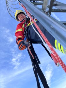 Schwerpunkte waren das Beherrschen relevanter Knoten und Sicherungstechniken sowie der Umgang mit der dazugehörigen Spezialausrüstung der Feuerwehren. Auf dem Firmengelände konnte schließlich an mehreren Objekten das anspruchsvolle Arbeiten in absturzgefährdeten Bereichen geübt werden.