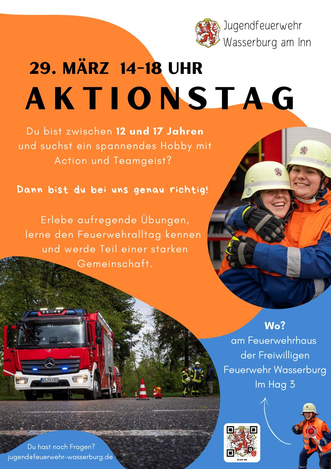 Zu einem großen Aktionstag der Jugend lädt die Feuerwehr Wasserburg alle Kinder und Jugendlichen zwischen zwölf und 17 Jahren aus der Stadt Wasserburg herzlich ein: Am kommenden Samstag, 29. März, können alle von 14 bis 18 Uhr spannende Übungen erleben, Geräte und Technik erkunden und den Alltag der Feuerwehr kennenlernen.