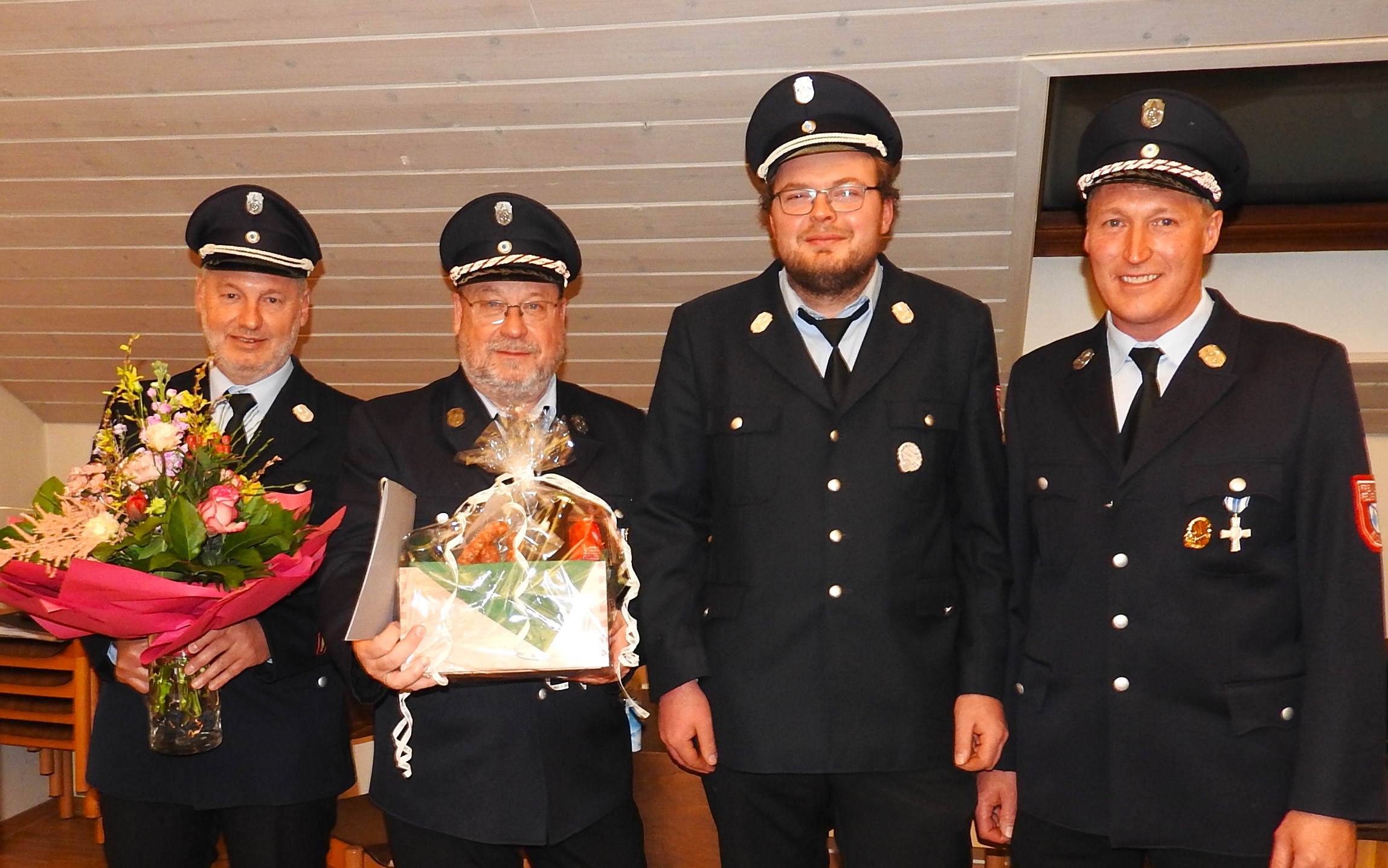 Auf dem Foto unten von links Lorenz Gottwald, Kommandant Vinzenz Hauke, Marinus Bauer und Christine Wagner.