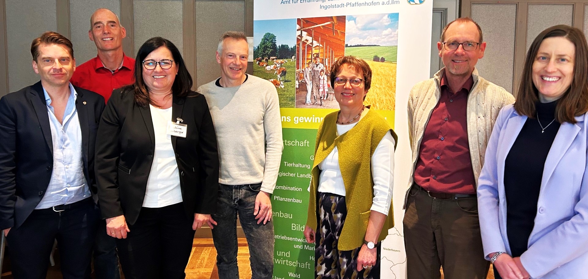 Gerhard Feigl (Praktiker Hofgut Wandlbeck) – Olaf Fries (Oberland Bioweiderind GmbH) – Sabine Biberger (Seminarleiterin AELF Ingolstadt-Pfaffenhofen) – Hubert Bittl (Küchenleiter Versicherungskammer München) – Irmgard Reischl (Sachgebiet Gemeinschaftsverpflegung Oberbayern) – Michael Böhm (Ecozept) und Karin Altinger (Heimatagentur Regierung von Oberbayern).