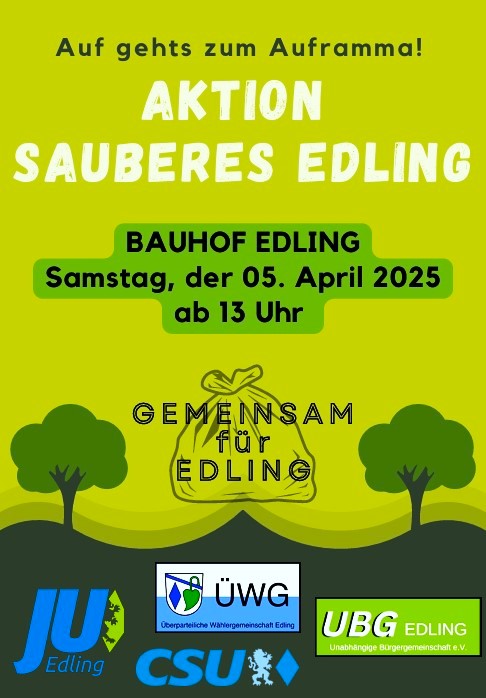 Mit anderen Worten: Auch dieses Jahr laden wieder alle politischen Gruppierungen der Gemeinde gemeinsam zur „Aktion sauberes Edling“ ein.