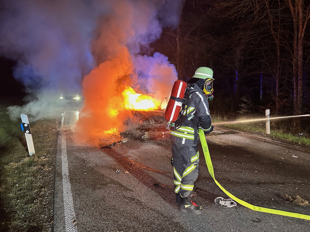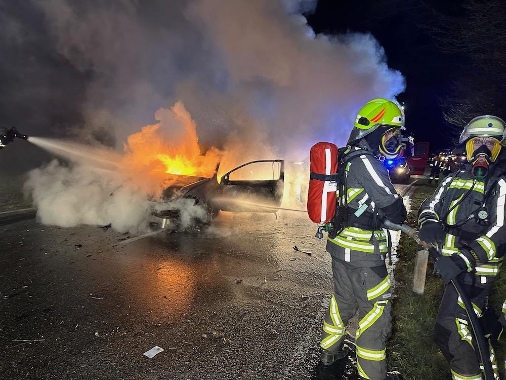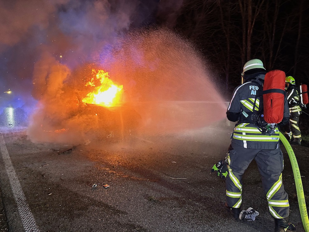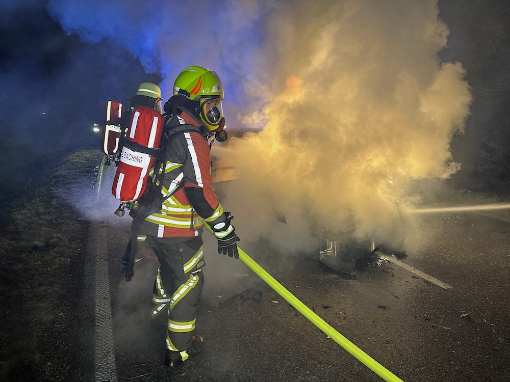 Alarm für die Feuerwehren Schleefeld, Steppach und Albaching am Donnerstagabend: Gegen 21.30 Uhr rückten die Floriansjünger auf die Kesselseestrecke zwischen Albaching und Edling aus. Beim Weiler Willerstett hat sich ein Unfall ereignet. Es gab Verletzte. Ein Fahrzeug brannte komplett aus. Ein Rettungshubschrauber wurde angefordert. Polizeibericht folgt.