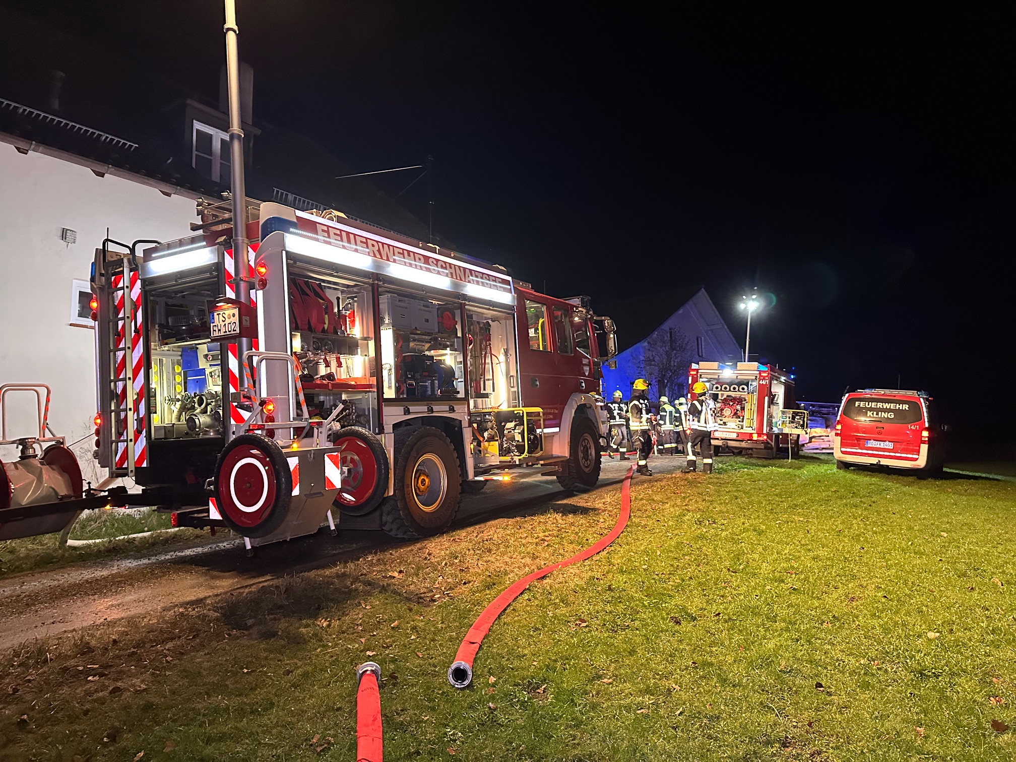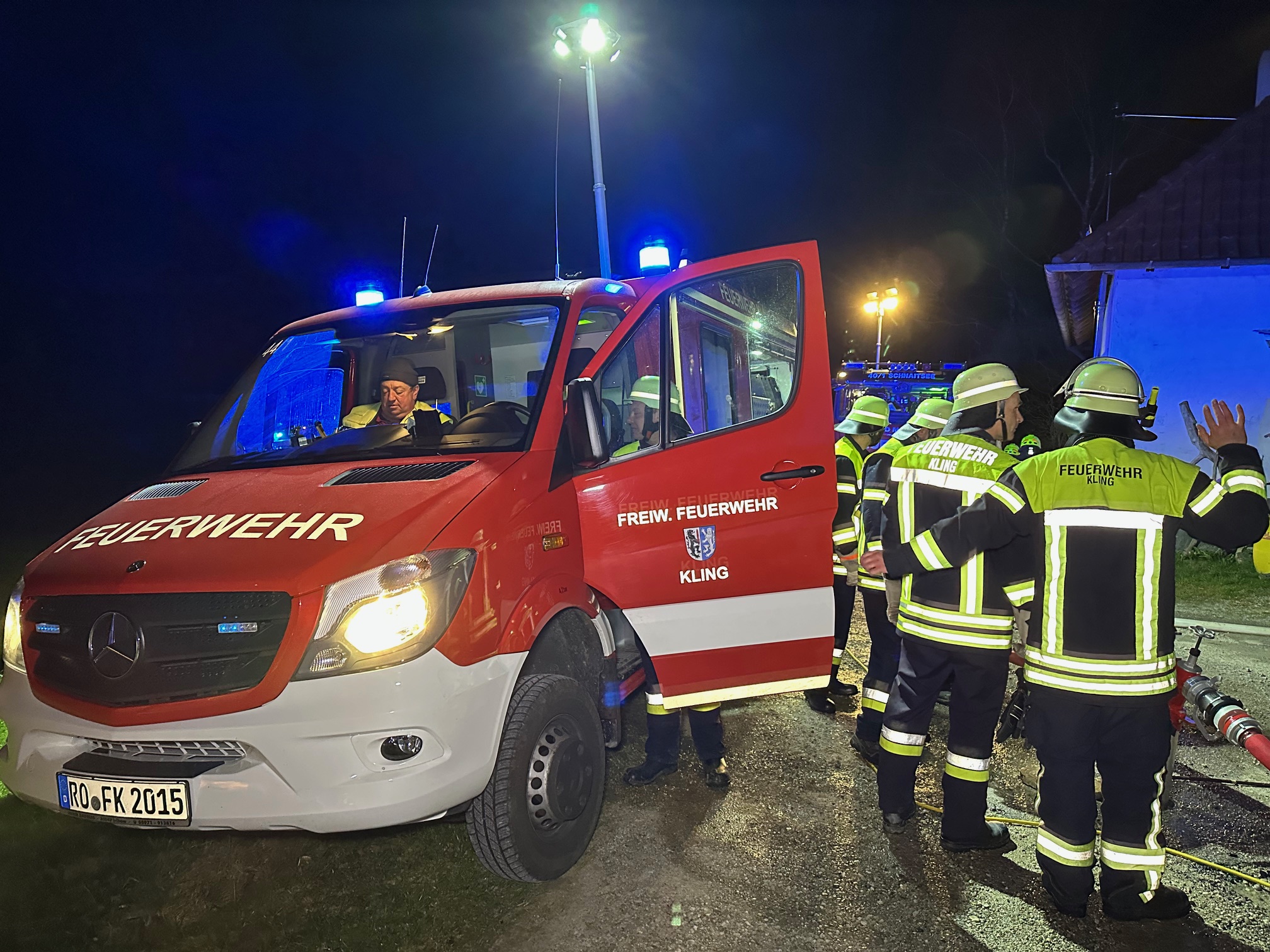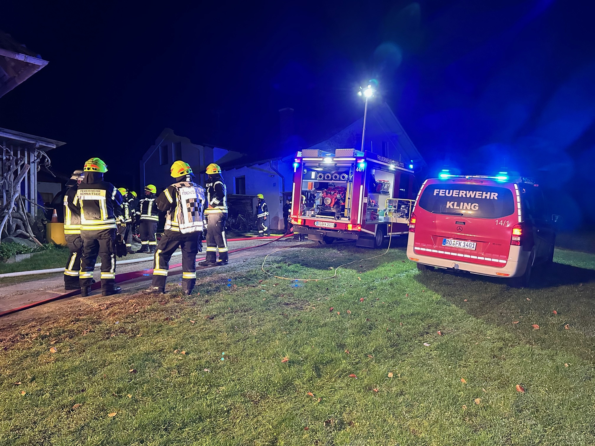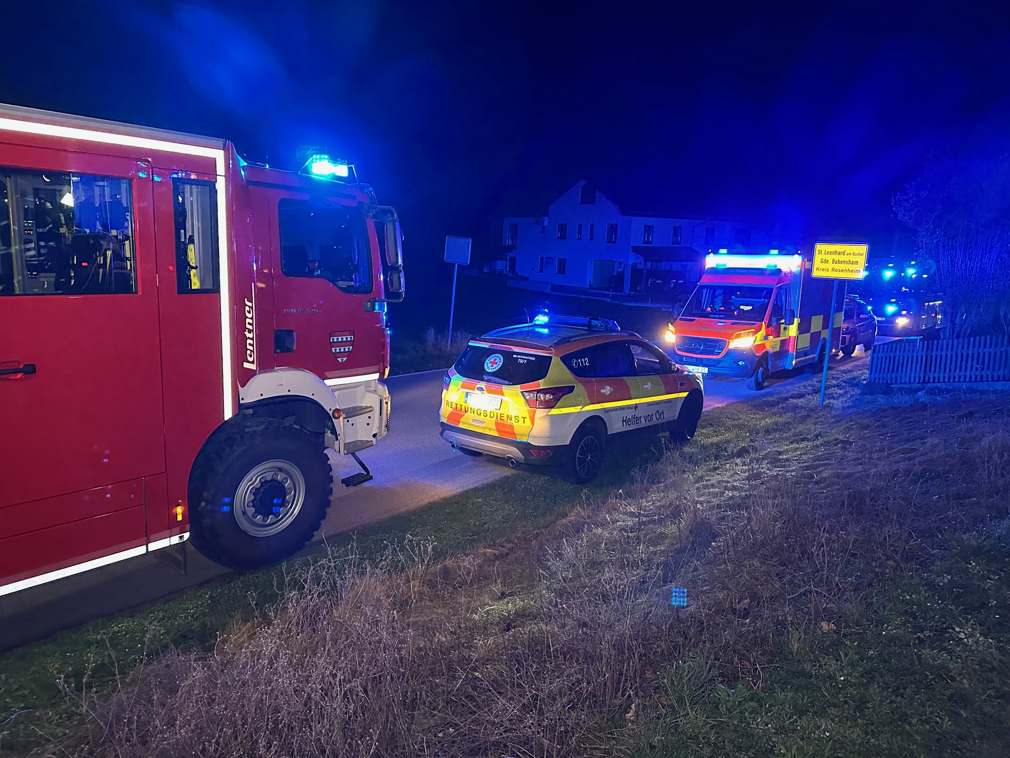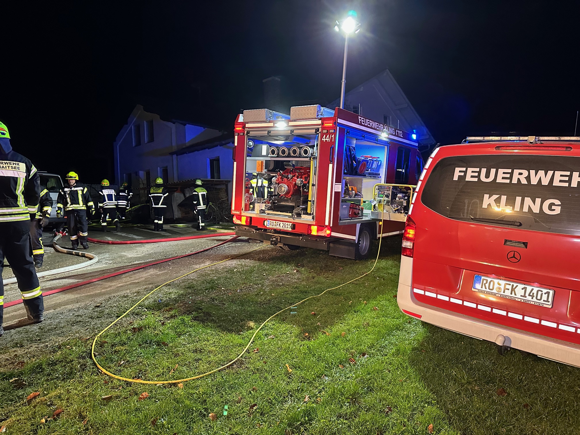 Die Feuerwehren Kling, Elsbeth, Titlmoos, Schnaitsee und Wasserburg rückten heute Nacht nach St. Leonhard in der Gemeinde Babensham aus. Von dort wurde aus einem Wohngebäude gegen 0.30 Uhr ein Kellerbrand gemeldet. Auch Polizei und Rettungsdienst waren im Einsatz. Die Lage war zum Glück rasch unter Kontrolle. Polizeibericht folgt. Fotos: Georg Barth
