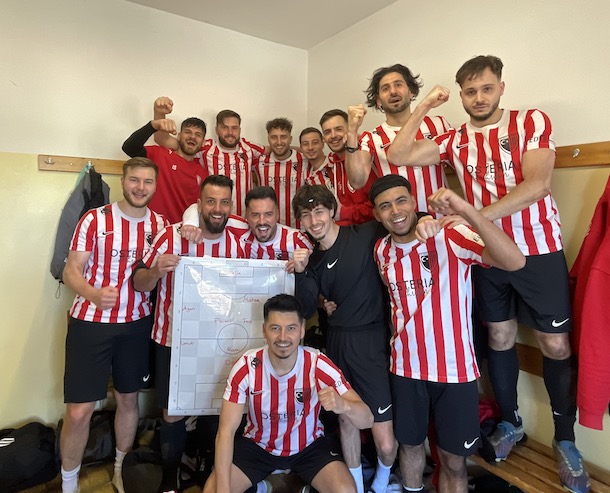 Bereits in der 5. Minute zeigte Dogukan Cicek seine Sprintqualitäten, als er einem Steilpass nachsetzte, den Torwart umkurvte und nur durch ein Foul gestoppt werden konnte. Den fälligen Strafstoß verwandelte er souverän selbst zur frühen Führung. In der 20. Minute war es ein weiter Ball vom 36-jährigen Innenverteidiger Sükrü Yagci auf Jungspund Rami Zaraket, der sich mit seinem Körper gegen zwei Gegenspieler behauptete und auf 0:2 stellte.