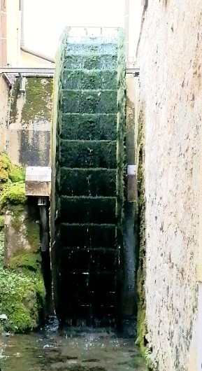 Nach der Besichtigung geht es zurück zur „Drax-Mühle“ (das Foto zeigt das Mühlrad dort), wo alle um 15 Uhr eine geführte Besichtigung erhalten.