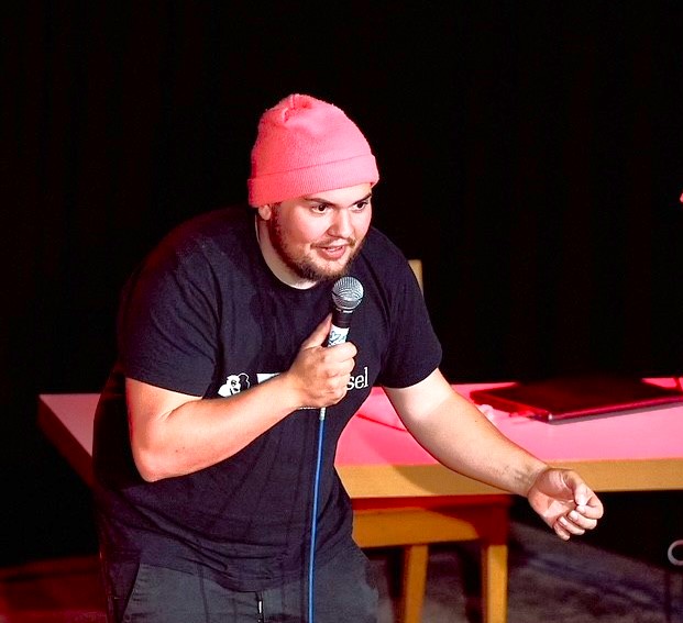 Auch der Frankfurter Uli Hoehmann, Hessenmeister 2023, der bereits im Dezember mit seiner bissig-satirischen Zeitkritik in Gut Staudham begeisterte, kommt wieder nach Wasserburg. Seit 2021 zieht es den Journalisten und Moderator auch auf die Poetry-Slam-Bühnen.