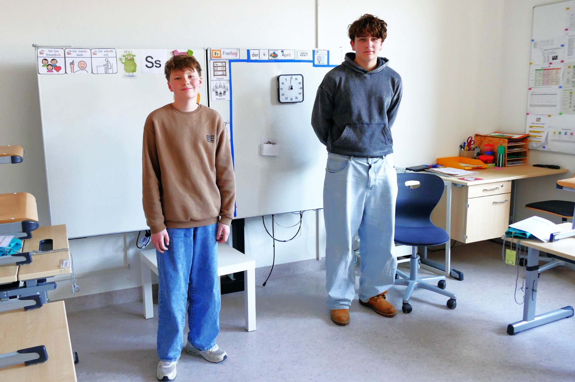 „Eine tolle Erfahrung und einfach mal ganz was anderes“, da waren sich die beiden Buben (Foto unten) einig. Anfängliche Berührungsängste konnten schnell abgebaut werden und auch die Werkstatt-Beschäftigten freuten sich über den Besuch. „Eine gute Abwechslung zur Schule und unerwartet schöne Erfahrungen“, so die Teilnehmer.