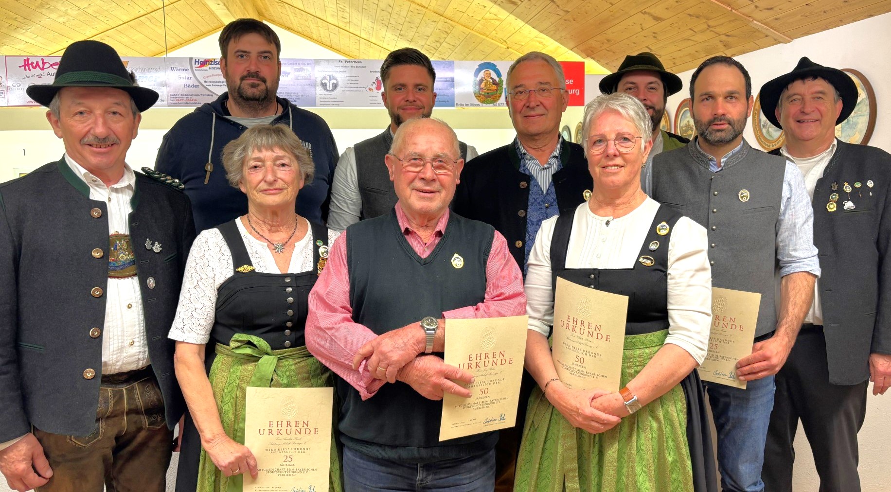 Bereits 25 Jahre im Verein sind Anneliese Frank, Andreas Krug, Franziska Herrfurtner, Franz Mayer, Patrick Schmid und Christian Stecher.