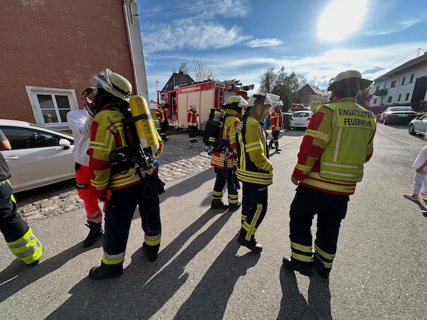Rauchgeruch in einem Wohngebäude – so lautete die Alarmierung für die Haager Feuerwehr am frühen Dienstagabend. Gegen 18.15 Uhr rückten die Floriansjünger in die Mühldorfer Straße aus. Die Ursache für den Brandgeruch war rasch ausgemacht – angebranntes Essen. Ein größerer Löscheinsatz war zum Glück nicht notwendig. Fotos: Georg Barth